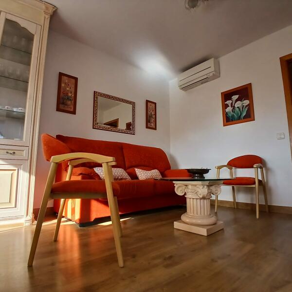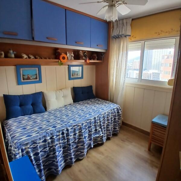Dispone de dos dormitorios con prácticos armarios empotrados, y aire acondicionado en dos estancias para mayor confort. El cuarto de baño principal ha sido renovado recientemente e incluye un moderno plato de ducha. Además, el segundo baño fue transformado en una habitación supletoria que actualmente se utiliza como espacio de almacenamiento, pero puede fácilmente reconvertirse en baño si se desea.