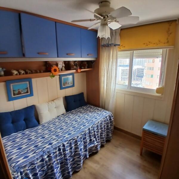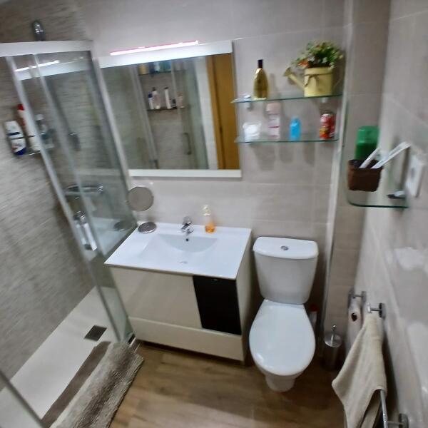 Dispone de dos dormitorios con prácticos armarios empotrados, y aire acondicionado en dos estancias para mayor confort. El cuarto de baño principal ha sido renovado recientemente e incluye un moderno plato de ducha. Además, el segundo baño fue transformado en una habitación supletoria que actualmente se utiliza como espacio de almacenamiento, pero puede fácilmente reconvertirse en baño si se desea.